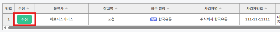 ② 화주리스트에서 [수정] 버튼을 누릅니다.