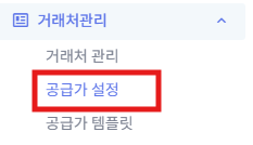 1) 왼쪽메뉴 [거래처관리] => [공급가 설정]을 클릭 합니다.