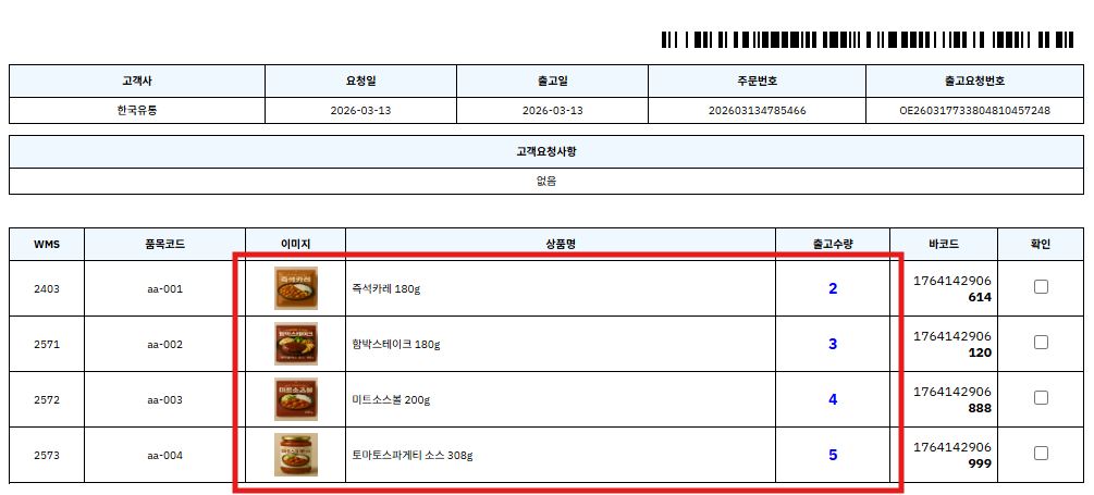 ※ [검수바코드라벨] 출력방법은 [검수바코드라벨출력] 에서 자세히 설명합니다.