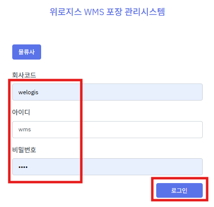 또는 주소창에 https://wms-ct.welogis.co.kr 를 직접 입력하여