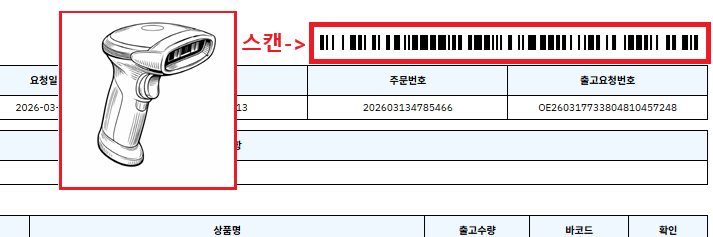 ⑤ 주문서 상단 바코드를 스캔 합니다.