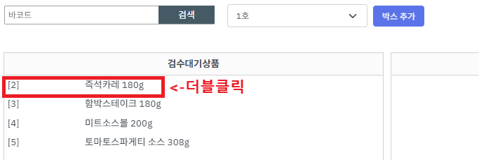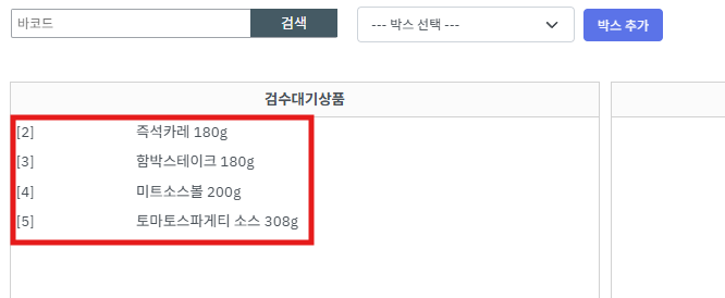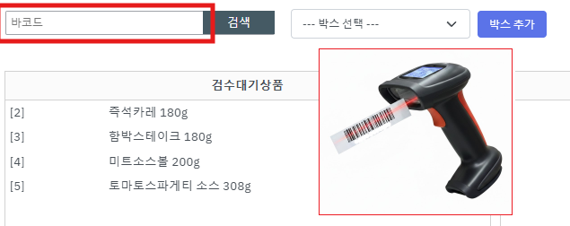 또는 [검수바코드-박스이름] 을 스캔 합니다.