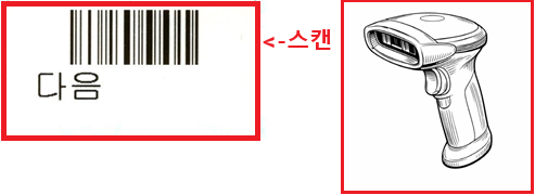 ⑨ 상품의 바코드를 스캐너로 스캔 합니다.