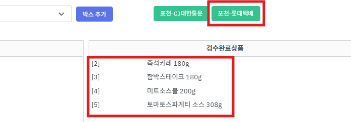 ※ 박스를 여러 개 생성한 경우 박스별로 원하는 상품을 나누어 담을 수 있습니다.