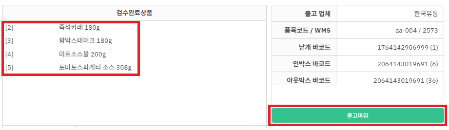 ⑮ 상품의 검수가 끝나면 오른쪽 하단의 [출고마감] 버튼을 누릅니다.