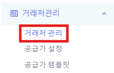 1) 왼쪽메뉴 [거래처관리] => [거래처관리]를 클릭 합니다.