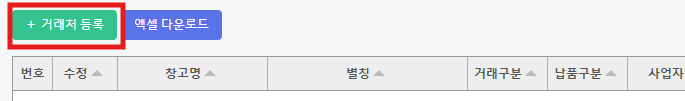 ※ 창고에 입/출고되는 업체만 등록해 주세요. 위탁업체는 등록하지 마세요.