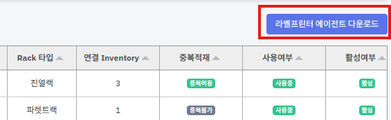 ② 오른쪽 상단 [라벨프린터에이전트다운로드] 버튼을 누릅니다.