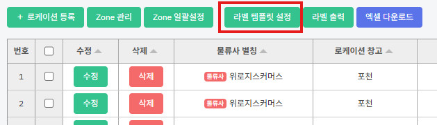① [라벨템플릿설정] 버튼을 누릅니다.