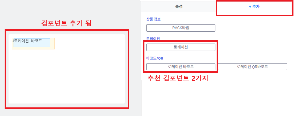 ※ 선택 추천 컴포넌트는 [로케이션] 과 [로케이션바코드] 2 가지입니다.