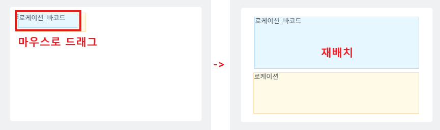 - [로케이션바코드] : 로케이션이름을 바코드로 변환한 이미지가 표시됩니다.