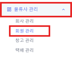 1) 왼쪽메뉴 [물류사관리] => [회원관리]를 클릭 합니다.