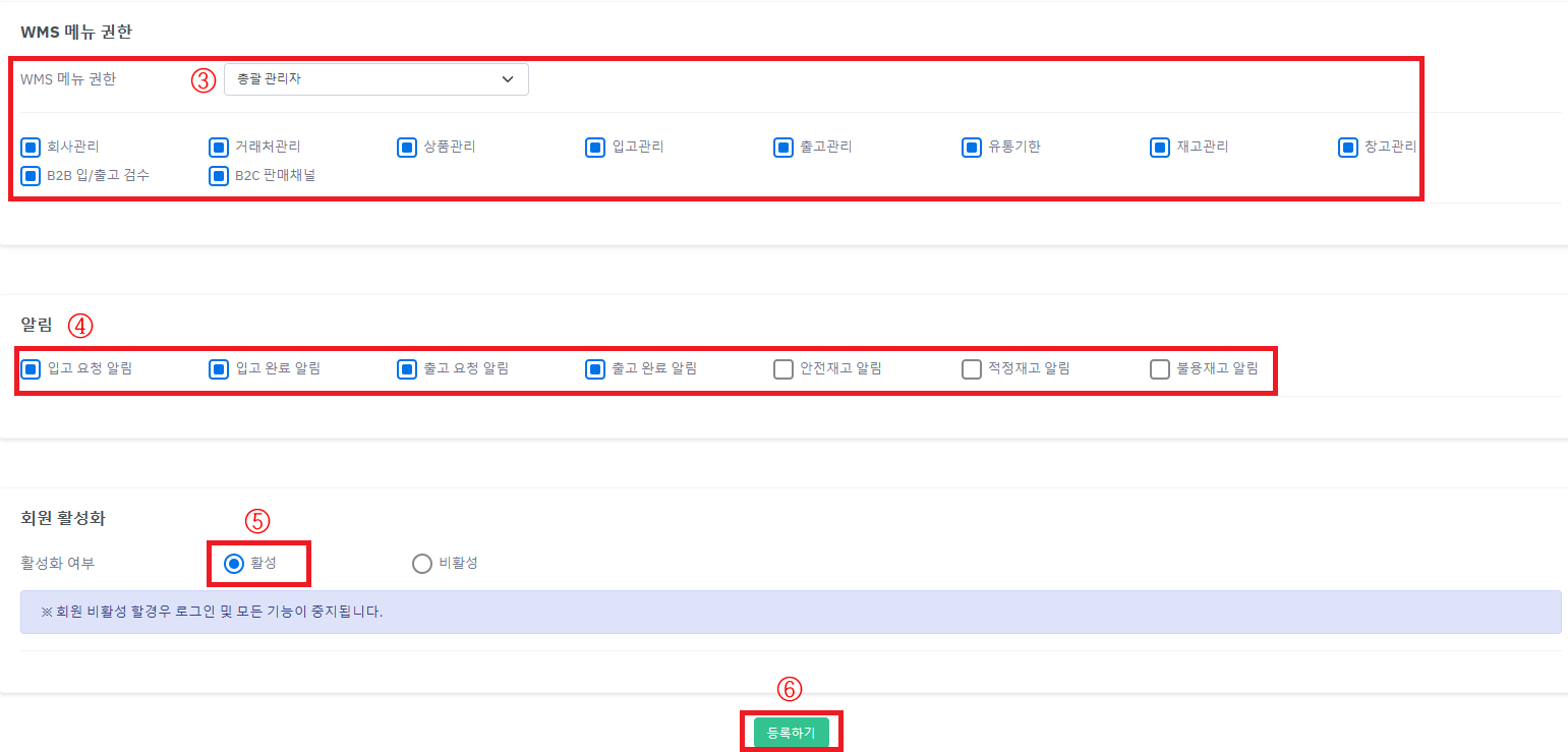 총괄관리자 : WMS의 모든 기능을 사용 할 수 있습니다.