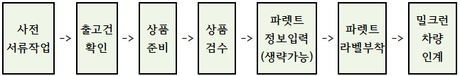 ② 출고준비가 끝나면 [MILKRUN]차량에 상품과 서류를 인계하고 출고 시킵니다.