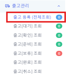 ① 왼쪽메뉴 [출고관리] => [출고등록(전체조회)] 를 클릭합니다.