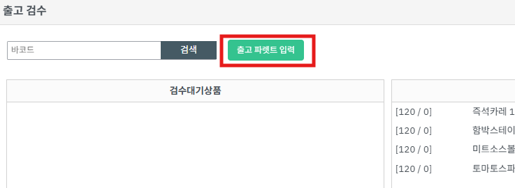 ① [출고파렛트 입력] 버튼을 누릅니다.