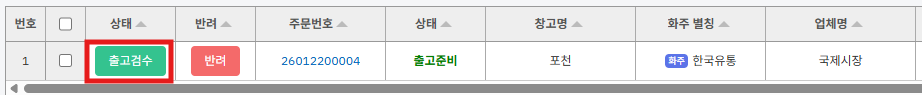 ① [출고검수] 버튼을 누릅니다.