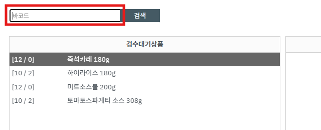 ② 검수창이 열리면 상품의 바코드를 바코드스캐너로 스캔 합니다.