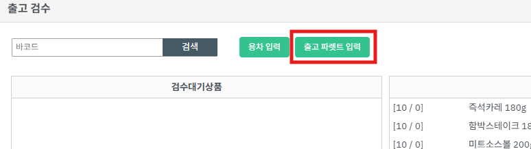 ③ [출고파렛트 입력] 버튼을 누릅니다.