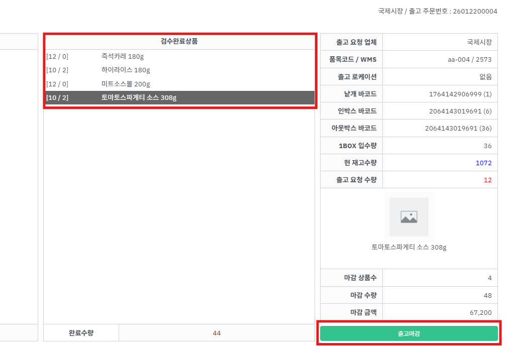 오른쪽 하단의 [출고마감] 버튼을 누릅니다.