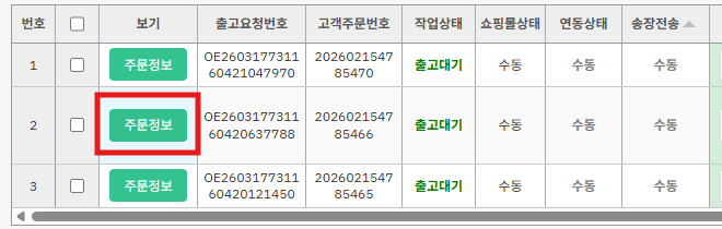 step2. 송장 정보는 리스트의 [주문정보] 버튼을 눌러 확인 할 수도 있습니다.