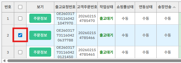 step5. 신규송장이 출력되면 주문리스트의 송장번호는 신규송장번호로 바뀝니다.