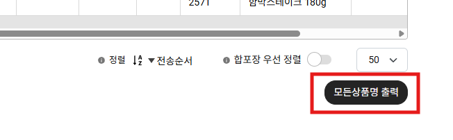 ※ 송장을 보고 상품을 준비(피킹) 해야 할 경우 [모든상품명출력] 버튼을 눌러