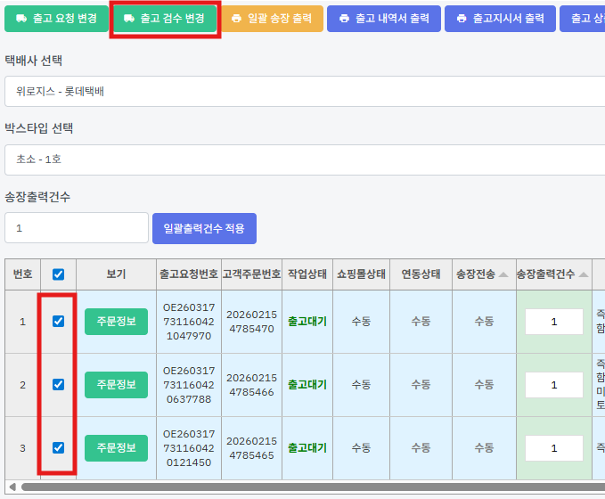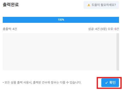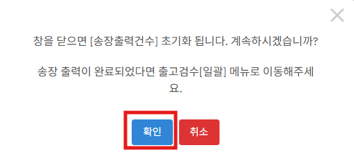반드시 출력된 송장 개수를 확인하시기 바랍니다.