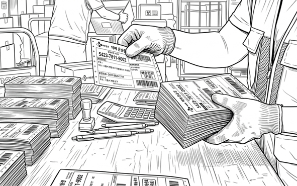 ⑪ 출력된 실물 송장의 개수를 확인 합니다.