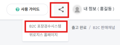 ② 위로시스 메인화면 우측상단 [3점] => [B2C 포장검수시스템] 을 클릭 합니다.