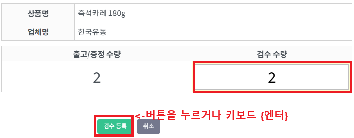또는 검수수량 기입 후 키보드 {엔터}를 누릅니다.