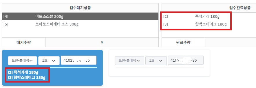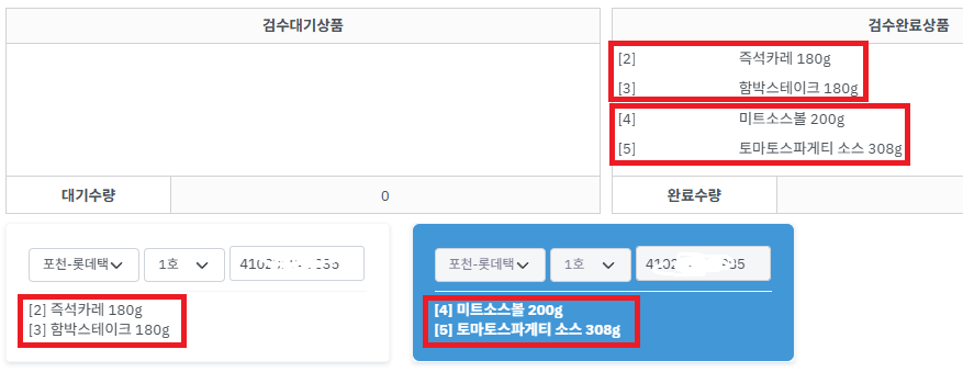 step3. 수기입력한 수량이 [검수대기]에서 [검수완료] 쪽으로 이동됩니다.
