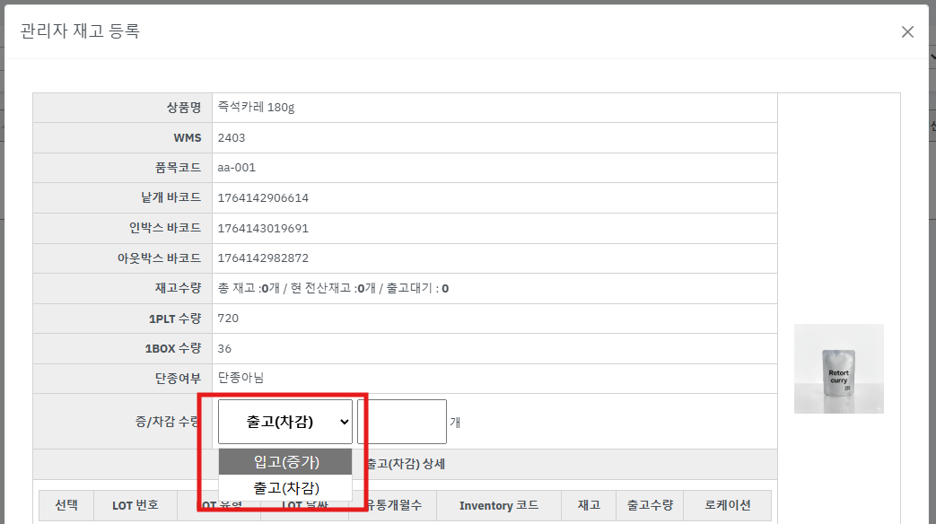 ② 상품의 WMS 번호를 알고 있거나 바코드 스캔이 가능한 경우