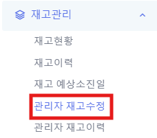 ① 왼쪽메뉴 [재고관리] => [관리자 재고수정] 을 클릭 합니다.