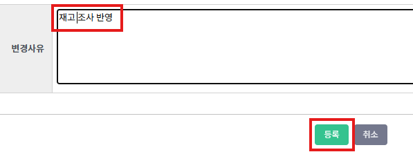 ⑧ 변경사유를 기입하고 [등록] 버튼을 누릅니다.