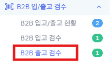① 왼쪽메뉴 [B2B 입/출고 검수] => [B2B 출고 검수]를 클릭 합니다.