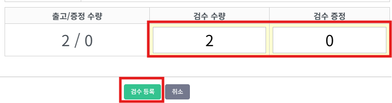 step2. 수기입력창이 나오면 검수 수량을 기입하고 [검수등록] 버튼을 누릅니다.
