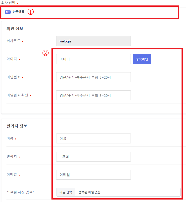 [화주회원]을 추가하는 방법 입니다.
