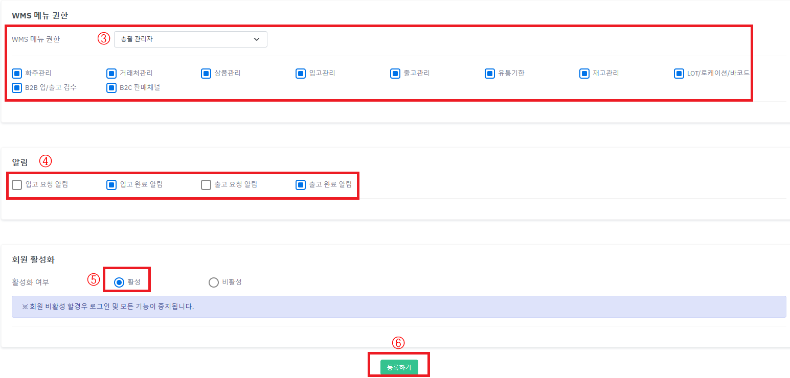 총괄관리자 : WMS의 모든 화주기능을 사용 할 수 있습니다.