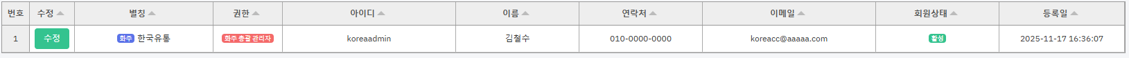 4) 등록된 회원을 리스트에서 확인할 수 있습니다.